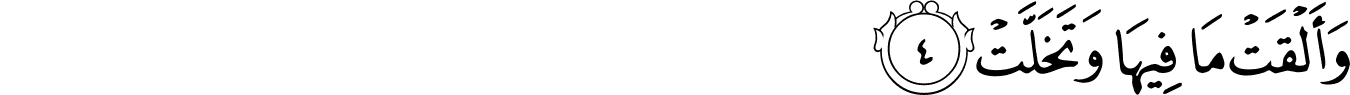 | 84:4:4 | وَتَخَلَّتۡۙ | وَتَخَلَّتْ | وَتَخَلَّتْ | وَتَخَلَّتْ | وَتَخَلَّتْ | وَتَخَلَّتْ | وتخلت | وَتَخَلَّتْ | ﭫ | وَتَخَلَّتْ | وَتَخَلَّتْ | وتخلت | وَتَخَلَّتۡ | وَتَخَلَّتۡ | ﱢ | ﱢ |