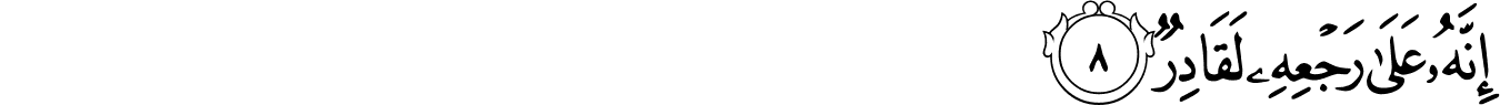 | 86:8:3 | رَجۡعِهٖ | رَجْعِهٖ | رَجْعِهٖ | رَجْعِهٖ | رَجْعِهٖ | رَجْعِهِۦ | رجعه | رَجْعِهِۦ | ﭵ | رَجْعِهِۦ | رَجْعِهِ | رجعه | رَجۡعِهِۦ |
