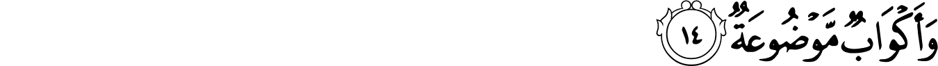 | 88:14:2 | مَّوۡضُوۡعَةٌ ۙ | مَّوْضُوْعَةٌ | مَّوْضُوْعَةٌ | مَّوْضُوْعَةٌ | مَّوْضُوْعَةٌ | مَّوْضُوعَةٌۭ | موضوعةۭ | مَّوْضُوعَةࣱ | ﮠ | مَّوْضُوعَةࣱ | مَّوْضُوعَةٌ | موضوعة | مَّوۡضُوعَةٞ |  | ﲩ | ﲩ |
