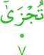 | 92:19:6 | تُجۡزٰٓىۙ | تُجْزٰۤی | تُجْزٰۤی | تُجْزٰ٘ي | تُجْزٰٓي | تُجْزَىٰٓ | تجزى | تُجْزَىٰٓ | ﭧ | تُجْزَىٰٓ | تُجْزَىٰ | تجزى | تُجۡزَىٰٓ |  | ﱮ | ﱮ |