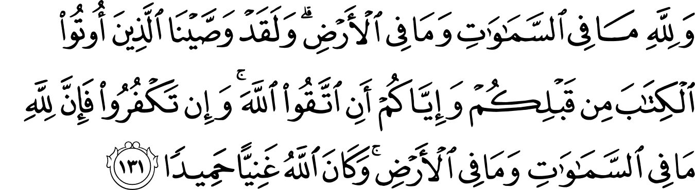| 4:131:18 | اللّٰهَ ؕ | اللّٰهَ ؕ | اللّٰهَ ؕ | اللّٰهَﵧ | اللّٰهَؕ | ٱللَّهَ ۚ | ٱللَّهَۚ | ﮪﮫ | ٱللَّهَۚ | اللَّهَ ۚ | ٱللَّهَۚ |