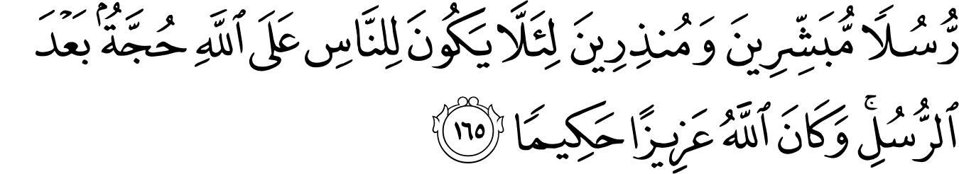 | 4:165:2 | مُّبَشِّرِيۡنَ | مُّبَشِّرِیْنَ | مُّبَشِّرِیْنَ | مُّبَشِّرِيْنَ | مُّبَشِّرِيْنَ | مُّبَشِّرِينَ | مُّبَشِّرِينَ | ﭿ | مُّبَشِّرِينَ | مُّبَشِّرِينَ | مُّبَشِّرِينَ |