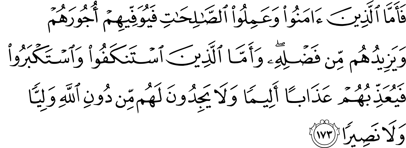 | 4:173:5 | الصّٰلِحٰتِ | الصّٰلِحٰتِ | الصّٰلِحٰتِ | الصّٰلِحٰتِ | الصّٰلِحٰتِ | ٱلصَّـٰلِحَـٰتِ | ٱلصَّٰلِحَٰتِ | ﮧ | ٱلصَّٰلِحَٰتِ | الصَّالِحَاتِ | ٱلصَّٰلِحَٰتِ |