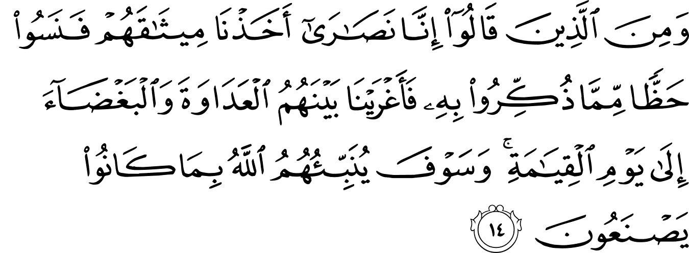 | 5:14:6 | اَخَذۡنَا | اَخَذْنَا | اَخَذْنَا | اَخَذْنَا | اَخَذْنَا | أَخَذْنَا | أَخَذْنَا | ﭖ | أَخَذْنَا | أَخَذْنَا | أَخَذۡنَا | أَخَذۡنَا | ﱆ | ﱆ |