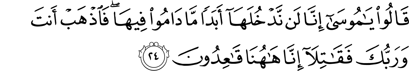 | 5:24:16 | قَاعِدُوۡنَ | قٰعِدُوْنَ | قٰعِدُوْنَ | قٰعِدُوْنَ | قٰعِدُوْنَ | قَـٰعِدُونَ | قَٰعِدُونَ | ﭡ | قَٰعِدُونَ | قَاعِدُونَ | قَٰعِدُونَ |