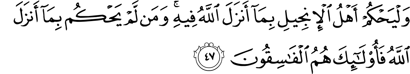 | 5:47:1 | وَلۡيَحۡكُمۡ | وَلْیَحْكُمْ | وَلْیَحْكُمْ | وَلْيَحْكُمْ | وَلْيَحْكُمْ | وَلْيَحْكُمْ | وَلْيَحْكُمْ | ﭭ | وَلْيَحْكُمْ | وَلْيَحْكُمْ | وَلۡيَحۡكُمۡ | وَلۡيَحۡكُمۡ | ﱝ | ﱝ |