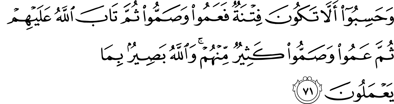 | 5:71:6 | وَصَمُّوۡا | وَصَمُّوْا | وَصَمُّوْا | وَصَمُّوْا | وَصَمُّوْا | وَصَمُّوا۟ | وَصَمُّوا۟ | ﭖ | وَصَمُّوا۟ | وَصَمُّوا | وَصَمُّواْ |