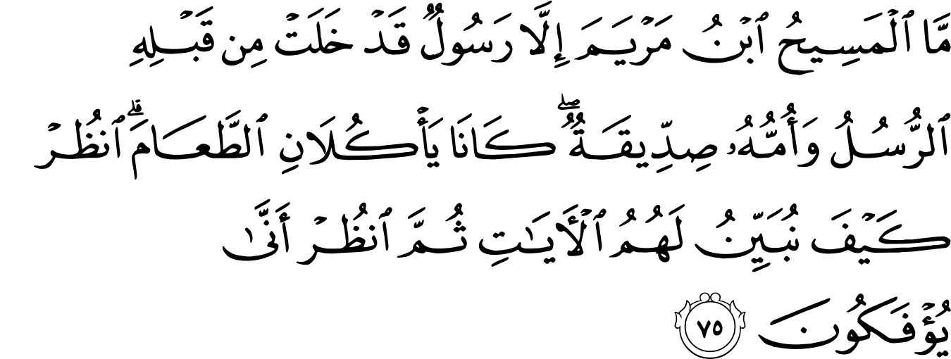 | 5:75:2 | الۡمَسِيۡحُ | الْمَسِیْحُ | الْمَسِیْحُ | الْمَسِيْحُ | الْمَسِيْحُ | ٱلْمَسِيحُ | ٱلْمَسِيحُ | ﯓ | ٱلْمَسِيحُ | الْمَسِيحُ | ٱلۡمَسِيحُ |