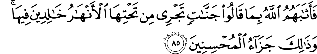 | 5:85:14 | الۡمُحۡسِنِيۡنَ | الْمُحْسِنِیْنَ | الْمُحْسِنِیْنَ | الْمُحْسِنِيْنَ | الْمُحْسِنِيْنَ | ٱلْمُحْسِنِينَ | ٱلْمُحْسِنِينَ | ﮇ | ٱلْمُحْسِنِينَ | الْمُحْسِنِينَ | ٱلۡمُحۡسِنِينَ |