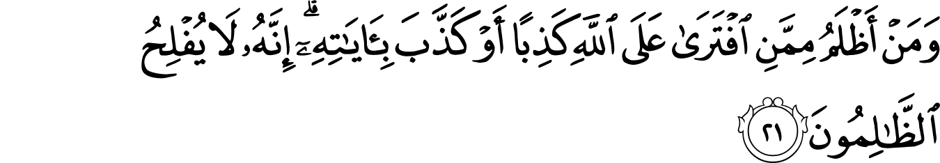 | 6:21:2 | اَظۡلَمُ | اَظْلَمُ | اَظْلَمُ | اَظْلَمُ | اَظْلَمُ | أَظْلَمُ | أَظْلَمُ | ﮍ | أَظْلَمُ | أَظْلَمُ | أَظۡلَمُ | أَظۡلَمُ | ﱽ | ﱽ |