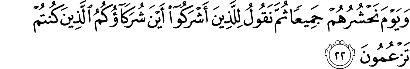 | 6:22:1 | وَيَوۡمَ | وَیَوْمَ | وَیَوْمَ | وَيَوْمَ | وَيَوْمَ | وَيَوْمَ | وَيَوْمَ | ﮜ | وَيَوْمَ | وَيَوْمَ | وَيَوۡمَ | وَيَوۡمَ | ﲌ | ﲌ |