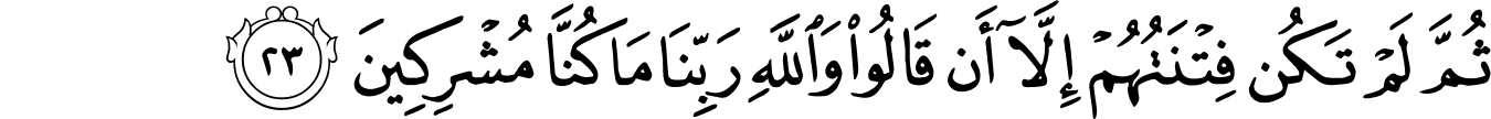 | 6:23:4 | فِتۡـنَـتُهُمۡ | فِتْنَتُهُمْ | فِتْنَتُهُمْ | فِتْنَتُهُمْ | فِتْنَتُهُمْ | فِتْنَتُهُمْ | فِتْنَتُهُمْ | ﮬ | فِتْنَتُهُمْ | فِتْنَتُهُمْ | فِتۡنَتُهُمۡ |