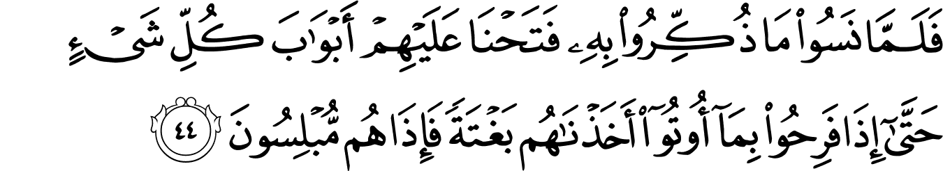 | 6:44:1 | فَلَمَّا | فَلَمَّا | فَلَمَّا | فَلَمَّا | فَلَمَّا | فَلَمَّا | فَلَمَّا | ﯸ | فَلَمَّا | فَلَمَّا | فَلَمَّا |