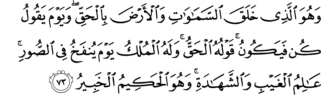 | 6:73:12 | الۡحَـقُّ ؕ | الْحَقُّ ؕ | الْحَقُّ ؕ | الْحَقُّﵧ | الْحَقُّؕ | ٱلْحَقُّ ۚ | ٱلْحَقُّۚ | ﯱﯲ | ٱلْحَقُّۚ | الْحَقُّ ۚ | ٱلۡحَقُّۚ |