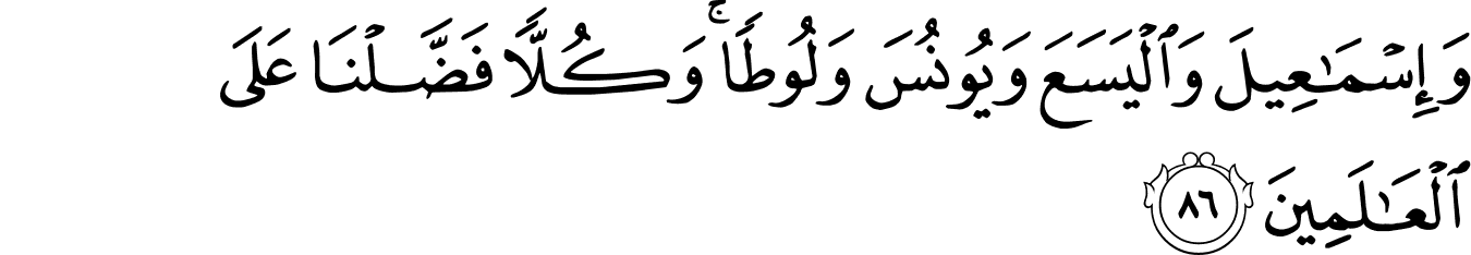 | 6:86:1 | وَاِسۡمٰعِيۡلَ | وَاِسْمٰعِیْلَ | وَاِسْمٰعِیْلَ | وَاِسْمٰعِيْلَ | وَاِسْمٰعِيْلَ | وَإِسْمَـٰعِيلَ | وَإِسْمَٰعِيلَ | ﮑ | وَإِسْمَٰعِيلَ | وَإِسْمَاعِيلَ | وَإِسۡمَٰعِيلَ |