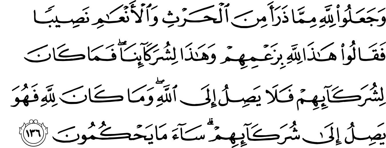 | 6:136:11 | لِلّٰهِ | لِلّٰهِ | لِلّٰهِ | لِلّٰهِ | لِلّٰهِ | لِلَّهِ | لله | لِلَّهِ | ﮘ | لِلَّهِ | لِلَّهِ | لله | لِلَّهِ | لِلَّهِ | ﲓ | ﲓ |