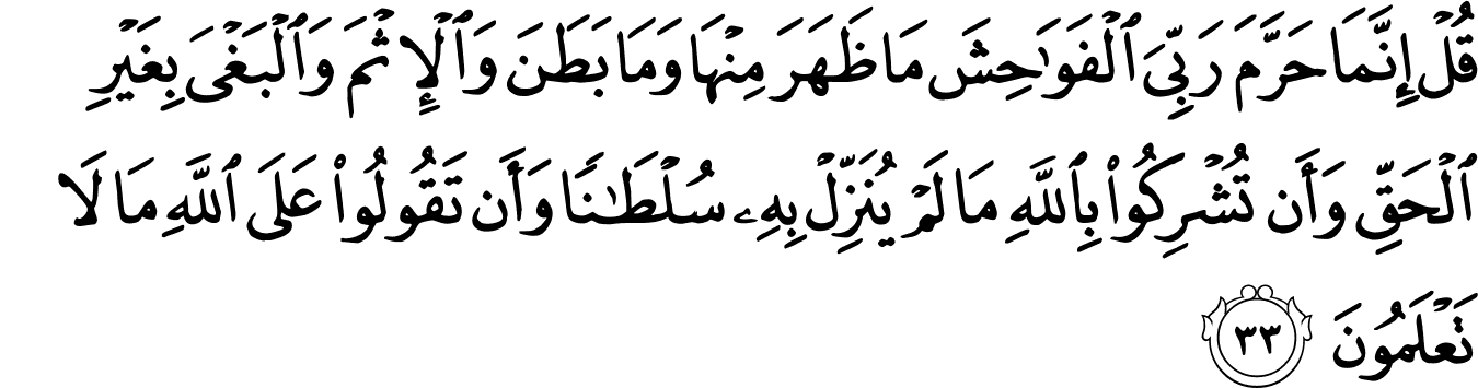 | 7:33:1 | قُلۡ | قُلْ | قُلْ | قُلْ | قُلْ | قُلْ | قل | قُلْ | ﮀ | قُلْ | قُلْ | قل | قُلۡ | قُلۡ | ﱰ | ﱰ |